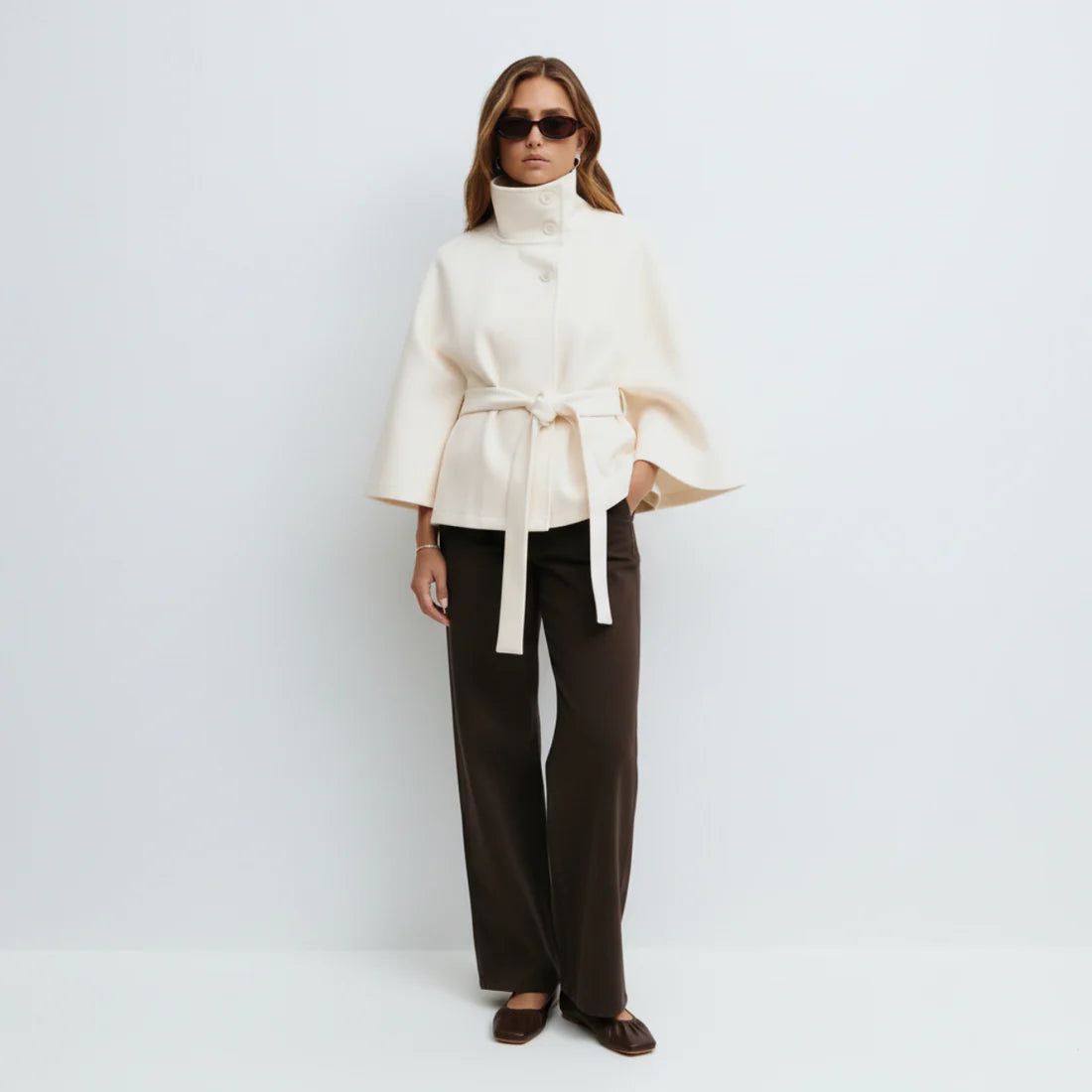 Der Messina Cape Coat zeichnet sich durch einen weichen, strukturierten Schnitt und einen verstellbaren Gürtel aus, der die Taille betont und gleichzeitig bequem ist. Seine vielseitige Form schmeichelt allen Figurtypen. So bleiben Sie den ganzen Tag lang warm, elegant und selbstbewusst.