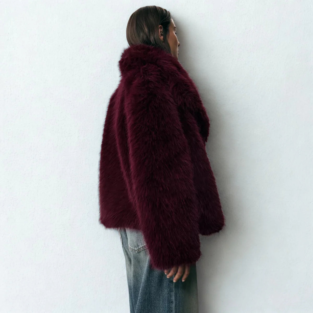 Das Fell ist ultraweich und hat einen natürlichen Glanz. Beim ersten Tragen kann es zu minimalem Haarausfall kommen. Schütteln Sie das Kleidungsstück einfach aus und bürsten Sie es vorsichtig, dann stabilisiert sich der Haarausfall schnell.