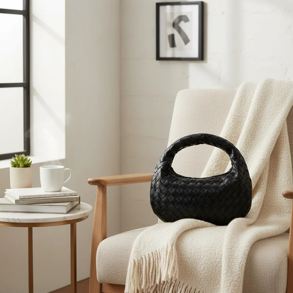 Die Mini Tasche Pisa ist aus hochwertigem veganem Leder gefertigt und besticht durch ihre charakteristische gewebte Struktur sowie eine elegante, abgerundete Silhouette. Kompakt, aber funktional, transportiert sie deine Essentials mit mühelosem Stil – vom schicken Tageslook bis zur eleganten Abendgestaltung.