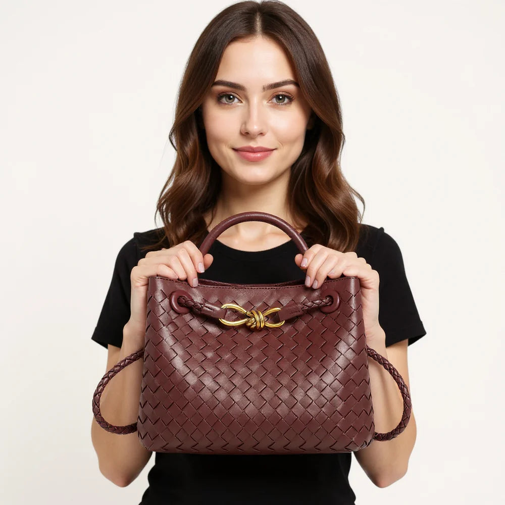 Die Cabas Catania ist aus hochwertigem veganem Leder gefertigt und besticht durch eine elegante, vom Flechtmuster inspirierte Silhouette. Kompakt, aber raffiniert, transportiert sie deine täglichen Essentials mit zeitloser Eleganz – von Stadtspaziergängen bis zu Abendveranstaltungen.