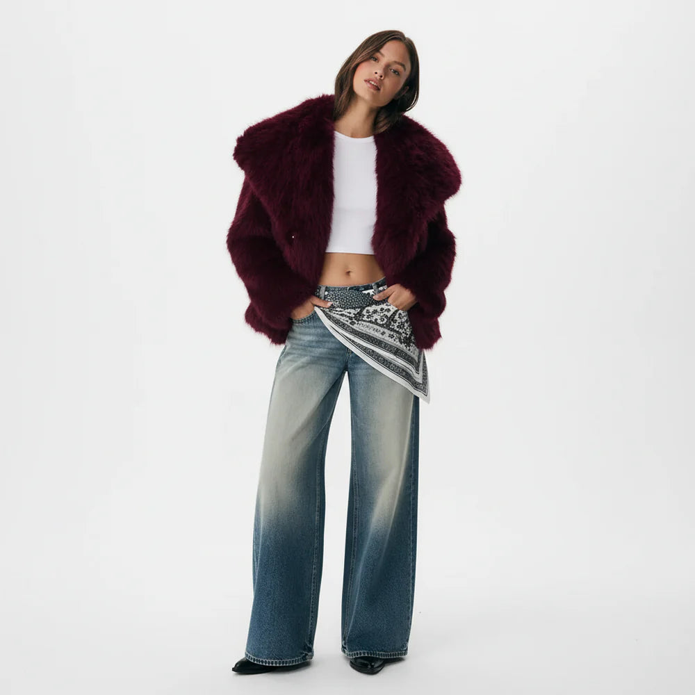 Das Fell ist ultraweich und hat einen natürlichen Glanz. Beim ersten Tragen kann es zu minimalem Haarausfall kommen. Schütteln Sie das Kleidungsstück einfach aus und bürsten Sie es vorsichtig, dann stabilisiert sich der Haarausfall schnell.