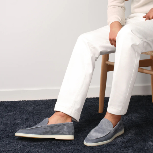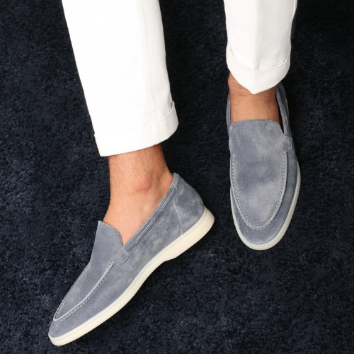 Diese Loafer Napoli® aus mittelblauem Veloursleder verleihen deiner Sommergarderobe mediterrane Eleganz.